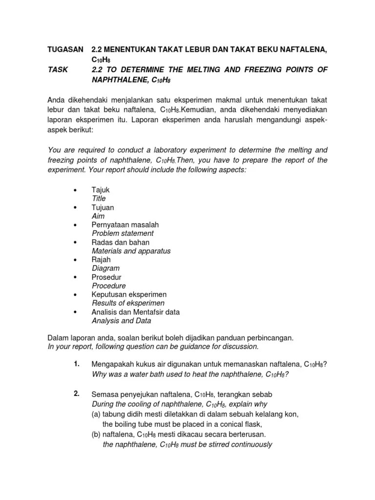 Kukus air dan kelalang kon digunakan bagi tujuan memastikan penyejukan sekata dan mengelakkan penyejukan lampau. Penerangan terperinci tentang cara yang tepat untuk menulis laporan eksperimen. Gunakan cermin mata keselamatan apabila mengendalikan eksperimen berkaitan. Sebatian ion dan sebatian kovalen. Subjek spm tingkatan 4 kimia mengikut sukatan matapelajaran malaysia.